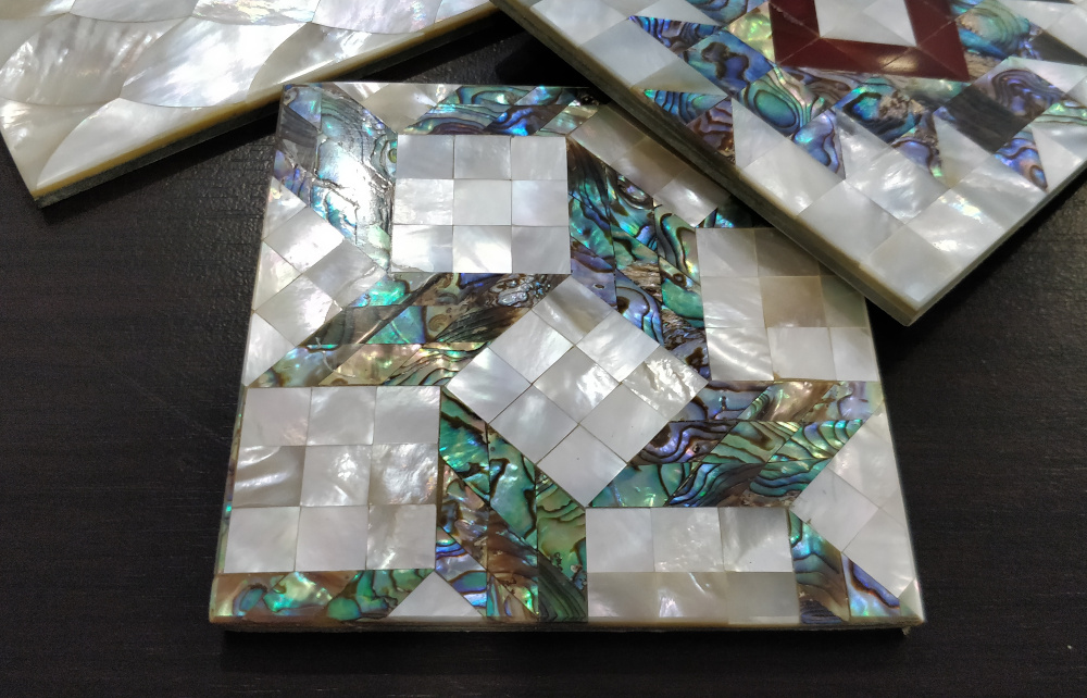 Exquisite coasters crafted with vibrant semiprecious stones.