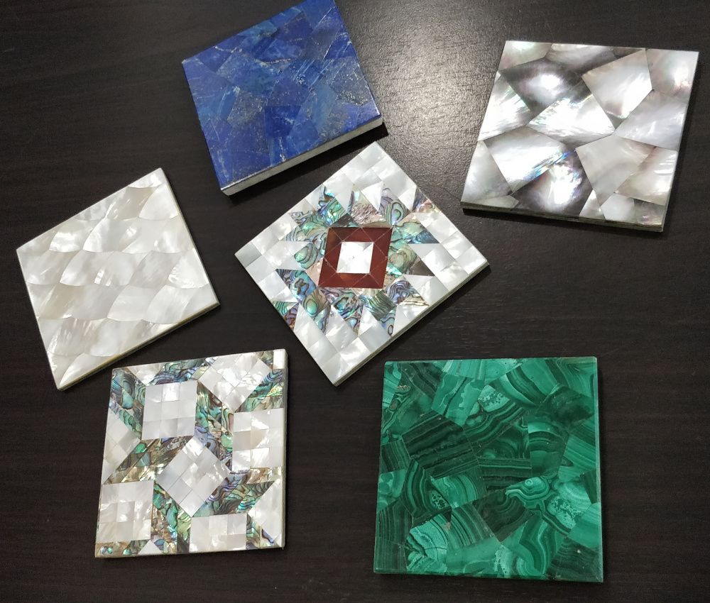 Exquisite coasters crafted with vibrant semiprecious stones.